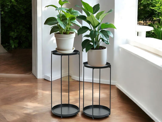 Set of 2 Black Plant Stands Set Made of Metal Round Table Risers for House Plants